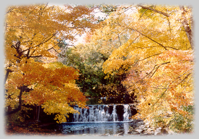 The Silvermine River mill pond and waterfall located approximately 1/4 mile from the Design One studios.