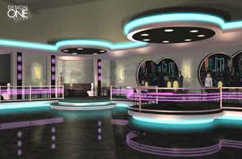 A unique Art Deco nightclub designed to showcase E-Lite, Corp. "glow-light" strips. |