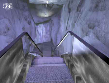 An escalator ride through a simulated glacier created for the Mashantucket Pequot Museum and Research Center. |